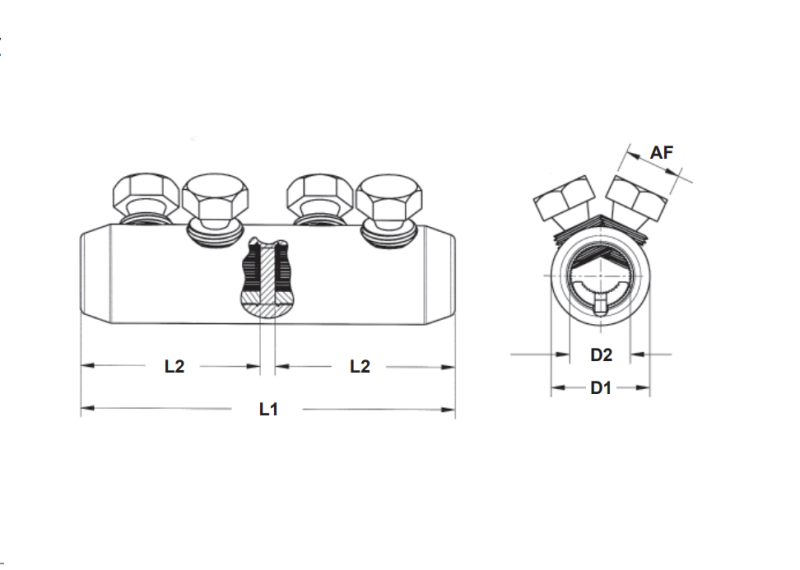 Al okrugli višežični: 25-95 mm² (promjer vodiča: 5.7 – 12.5 mm), Al okrugli 1-žični: 16-95 mm² (promjer vodiča: 4.1 – 11 mm), Al sektorski višežični: 25-70 mm² (95 mm² uz prethodno zaokruživanje vodiča)