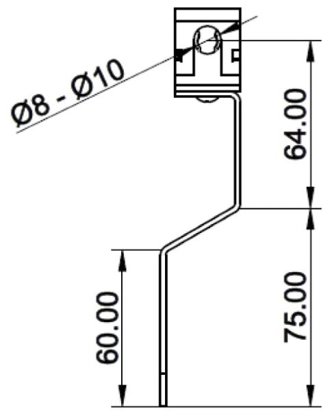 Primjena: krovni nosač tip GKNL 071 M namijenjen je za montažu okruglog vodiča promjera Ø 8-10 mm na krov pokriven limom – parapetni zid pokriven limom i sl.