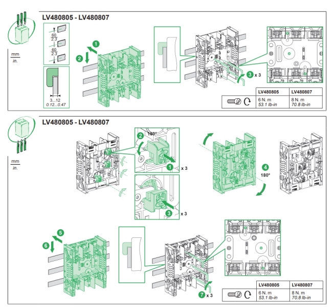 – sklopka se pomoću okretnih kuka pričvršćuje na sabirnice razmaka 60 mm