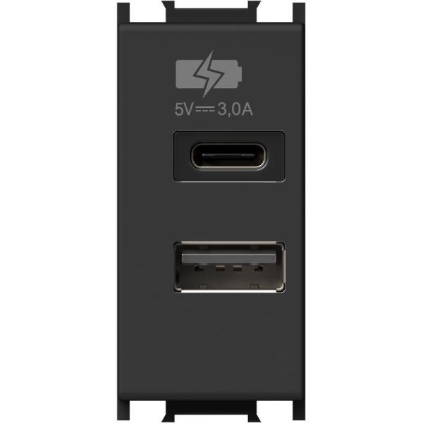 Priključnica (napajanje) USB dvostruka za ugradnju na nosače TEM MODUL, 1x USB-C, 1x USB-A