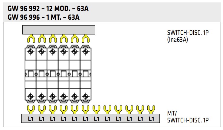 Sabirnica izolirana bakrena 1P viličasta, za 12 modula