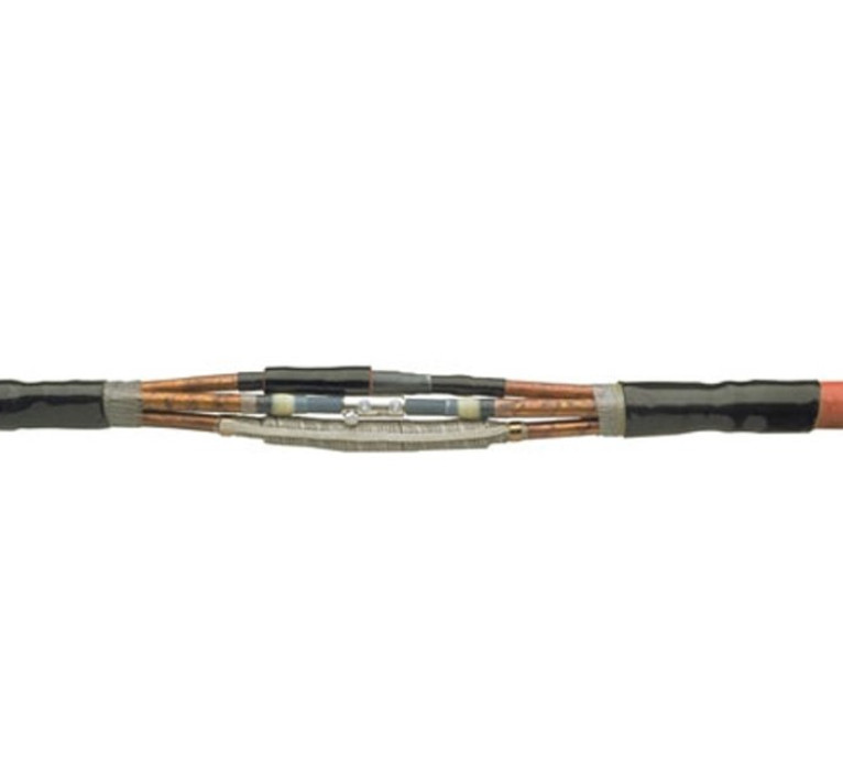 Opis: na kraju zaslona izolacije 1-žilnih kabela postavlja se žuta traka te cijev za kontrolu električnog polja. Vodiči se spajaju vijčanim čahurama isporučenim u kompletu spojnice, a nakon toga se premotaju krpom za kontrolu električnog polja. Toploskupljajuća trostruko ekstrudirano tijelo spojnice pruža dovoljnu debljinu izolacije, te potreban zaslon izolacije. Električni oklop spojnice obnavlja se bakrenom