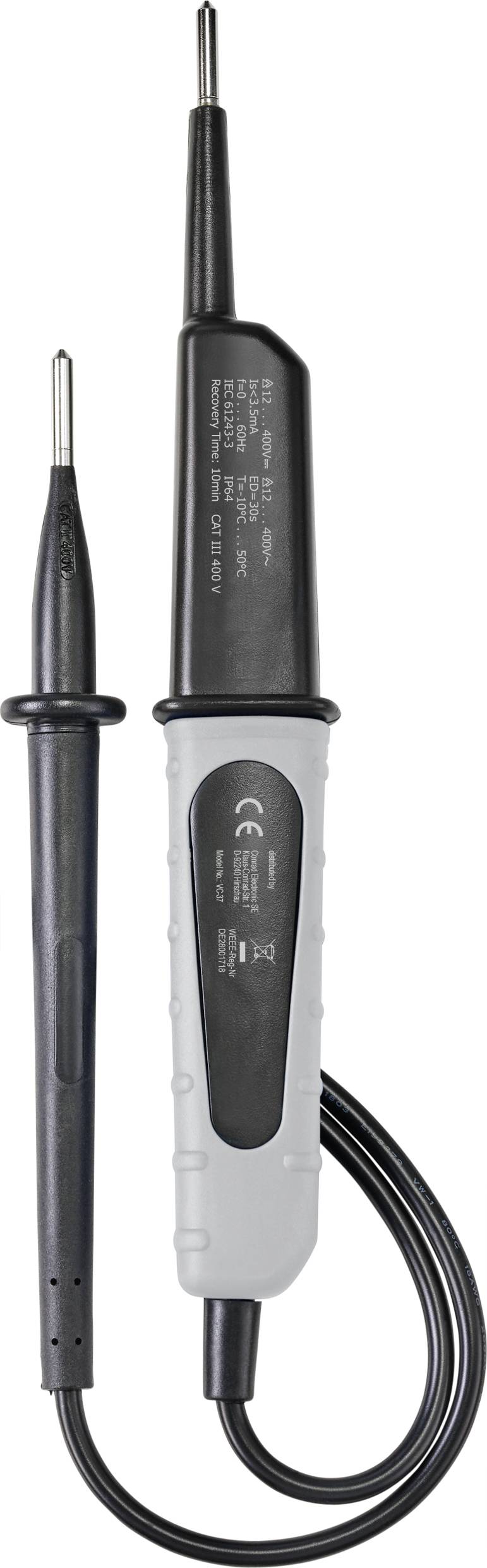 Tehničke specifikacije: https://asset.conrad.com/media10/add/160267/c1/-/en/002384631DS00/podatkovna-tablica-2384631-voltcraft-vc-37-se-dvopolni-tester-napona-cat-iii-led.pdf